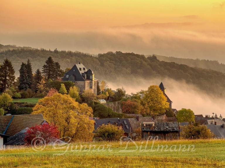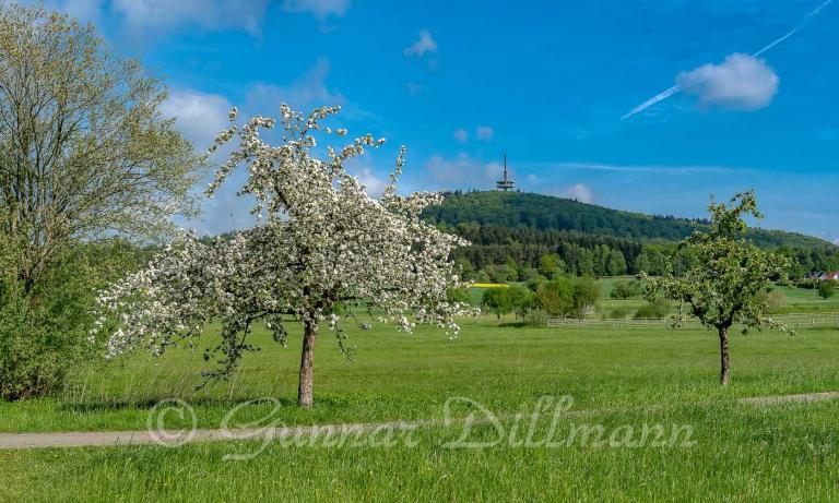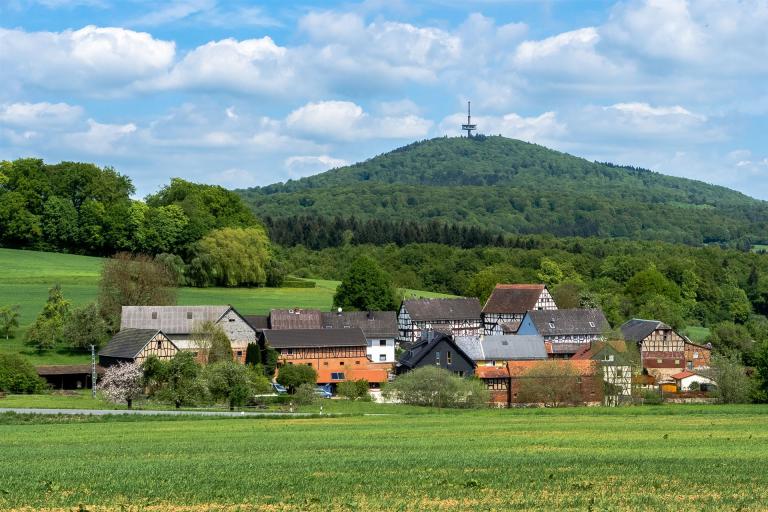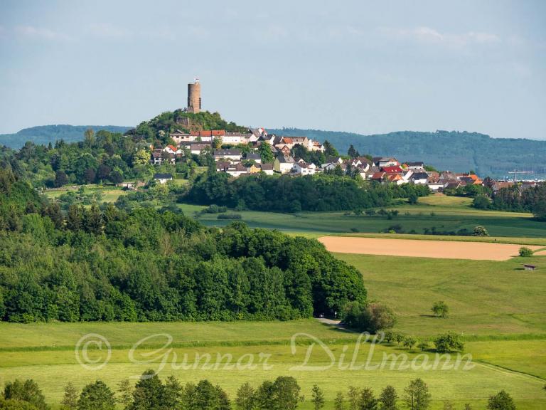 Vorne liegt Hof Haina, eine nur aus wenigen Häusern bestehende Siedlung. Dahinter liegt Bieber und ganz hinten rechts sieht man unseren Wohnort, Fellingshausen.