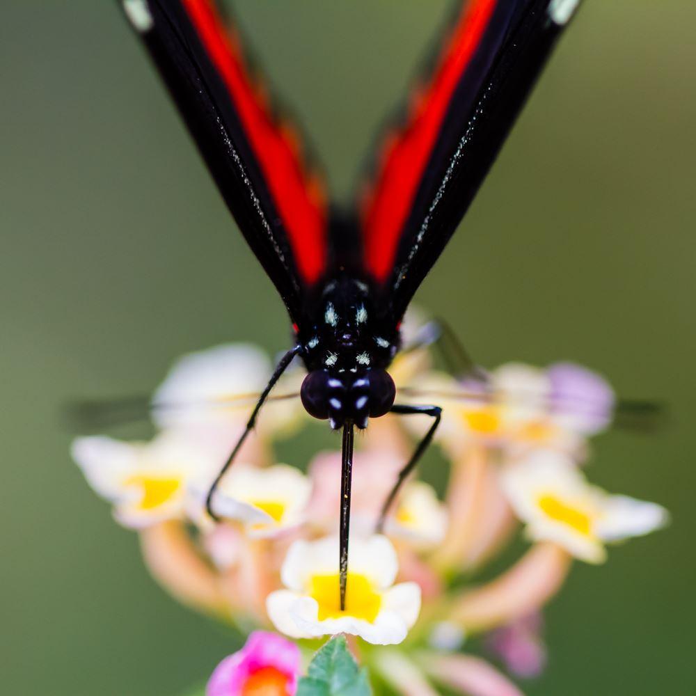 Hier ein Schmetterling beim Nektarsaugen an einer Blüte. für diese Aufnahmen nutze ich in der Regel ein Makro-Objektiv mit dem Abbildungsmaßstab 1:1, das Canon EF 100 mm.