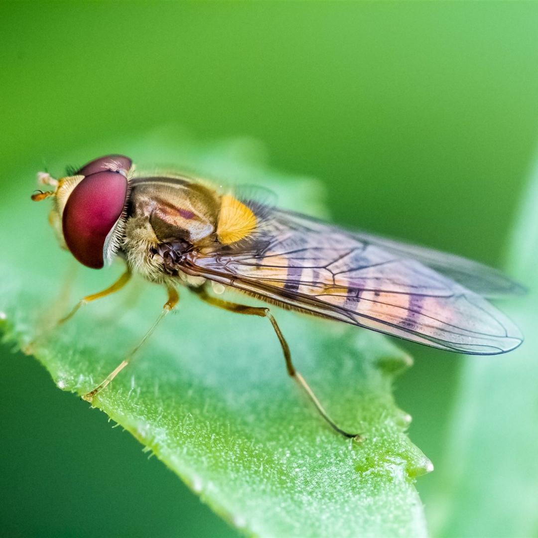 Auch die kleine Schwebfliege wurde mit meinem Standard-Makro-Objektiv, dem Canon EF 100 mm, aufgenommen